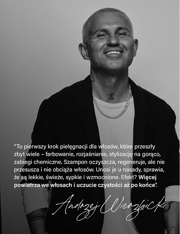 “To pierwszy krok pielęgnacji dla włosów, które przeszły zbyt wiele – farbowanie, rozjaśnianie, stylizację na gorąco, zabiegi chemiczne. Szampon oczyszcza, regeneruje, ale nie przesusza i nie obciąża włosów. Unosi je u nasady, sprawia, że są lekkie, świeże, sypkie i wzmocnione. Efekt? Więcej powietrza we włosach i uczucie czystości aż po końce”.